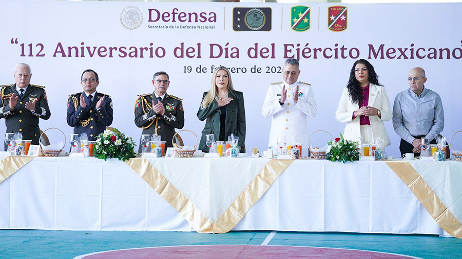 En el marco del 112° Aniversario del Día del Ejército Mexicano, la secretaria general de Gobierno, Rocío Esther González García, acudió en representación del gobernador del estado, Miguel Ángel Navarro Quintero, a la ceremonia conmemorativa organizada por la 13/a. Zona Militar.
