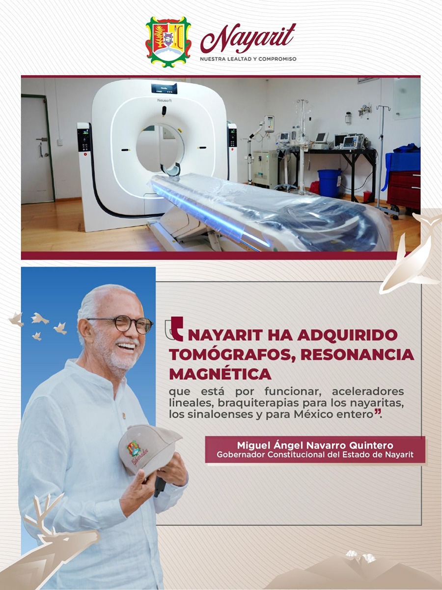 Nayarit avanza en materia de salud con la adquisición de tomógrafos, resonancia magnética, aceleradores lineales y equipos de braquiterapia, que pronto estarán en funcionamiento.