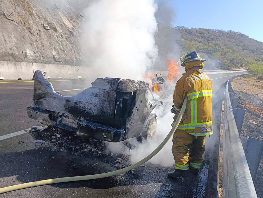 Up en total y libre combustión, de manera inmediata, los agentes establecieron una zona de seguridad en la carretera para realizar las labores de manera segura.