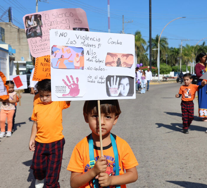 En su intervención, la presidenta municipal Nora Lilia Burgara Alarcón agradeció la participación de las niñas, niños, docentes, autoridades y ciudadanía en general, expresando que este 25 de noviembre es un recordatorio de la responsabilidad colectiva, para seguir trabajando por un municipio más seguro y justo. Señaló que la violencia contra las niñas, niños y mujeres es una realidad que debe enfrentarse con acciones firmes, y reconoció el trabajo que realiza el Instituto Municipal de la Mujer, a cargo de la Lic. Wendy Reyes González, en coordinación con el programa federal PAIBIM, quienes diariamente realizan labores de acompañamiento y atención a quienes lo necesitan.