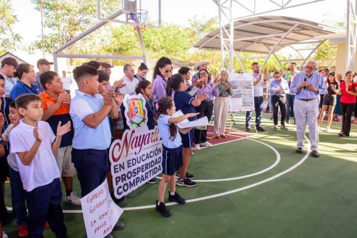 Este domingo, el gobernador del estado, Miguel Ángel Navarro Quintero, y su esposa, la doctora Beatriz Estrada Martínez, presidenta del Sistema DIF Nayarit, entregaron obras que durante más de cien años no habían llegado a la primaria Álvaro Obregón, ubicada en la localidad de Los Salazares, municipio de Tepic, la cual pasó de contar con apenas dos aulas a convertirse en una institución completa y funcional.
