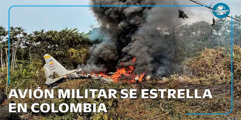 La aeronave Hércules, de fabricación estadunidense, se precipitó a tierra con 125 ocupantes a las 10H00 horas locales (15H00 GMT), poco después de despegar en Puerto Leguízamo, cerca de la frontera con Perú y Ecuador, por causas que aún se desconocen.